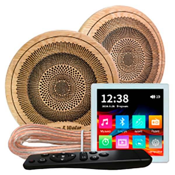 Комплект акустической системы SW БАНЯ ПО БЕЛОМУ 2R white (Белая панель управления, ПДУ, 2 белых врезных динамика, 2 круглые дубовые сетки, акустич кабель 10 п.м.)